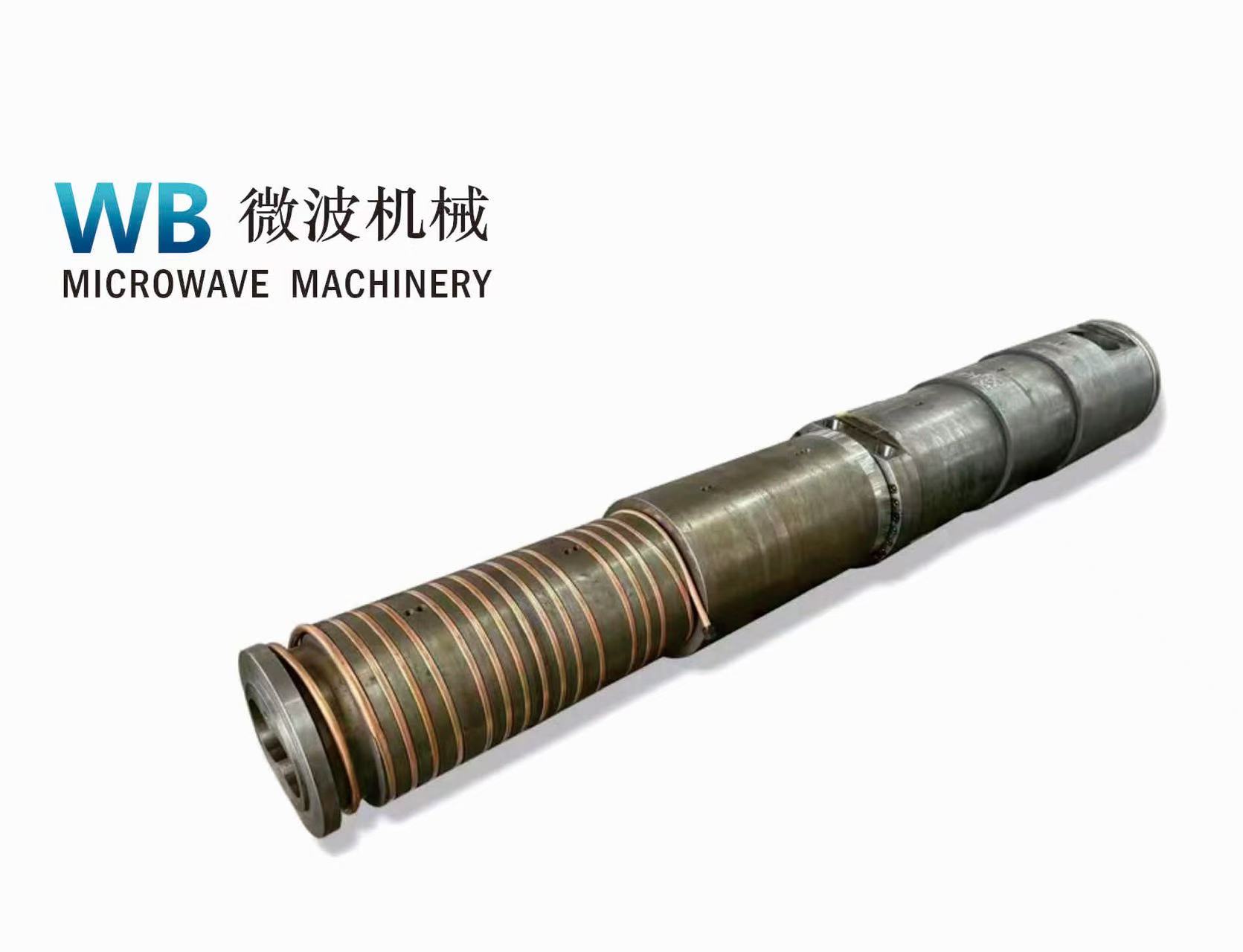 Tidak seperti penyemperit tradisional yang menggunakan pemanasan luaran, skru khas yang dipamerkan oleh syarikat menggunakan teknologi pemanasan dalaman yang dibantu gelombang mikro. Seperti yang dilihat dalam pameran, ekor skru dibalut dengan gegelung berwarna tembaga ketepatan, komponen teras penjana gelombang mikro, yang secara langsung memanaskan bahan di dalam skru. Ini secara berkesan menyelesaikan masalah lag pemanasan tradisional, meningkatkan kecekapan pemanasan dengan ketara dan mengurangkan penggunaan tenaga, menjadikannya sangat sesuai untuk memproses bahan sensitif haba.